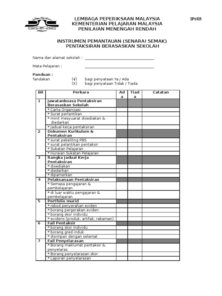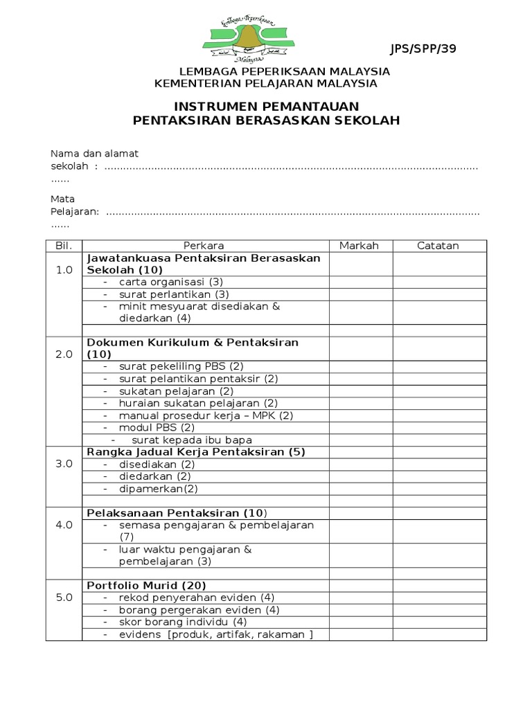 Borang Pentaksiran Berasaskan Sekolah Pdf