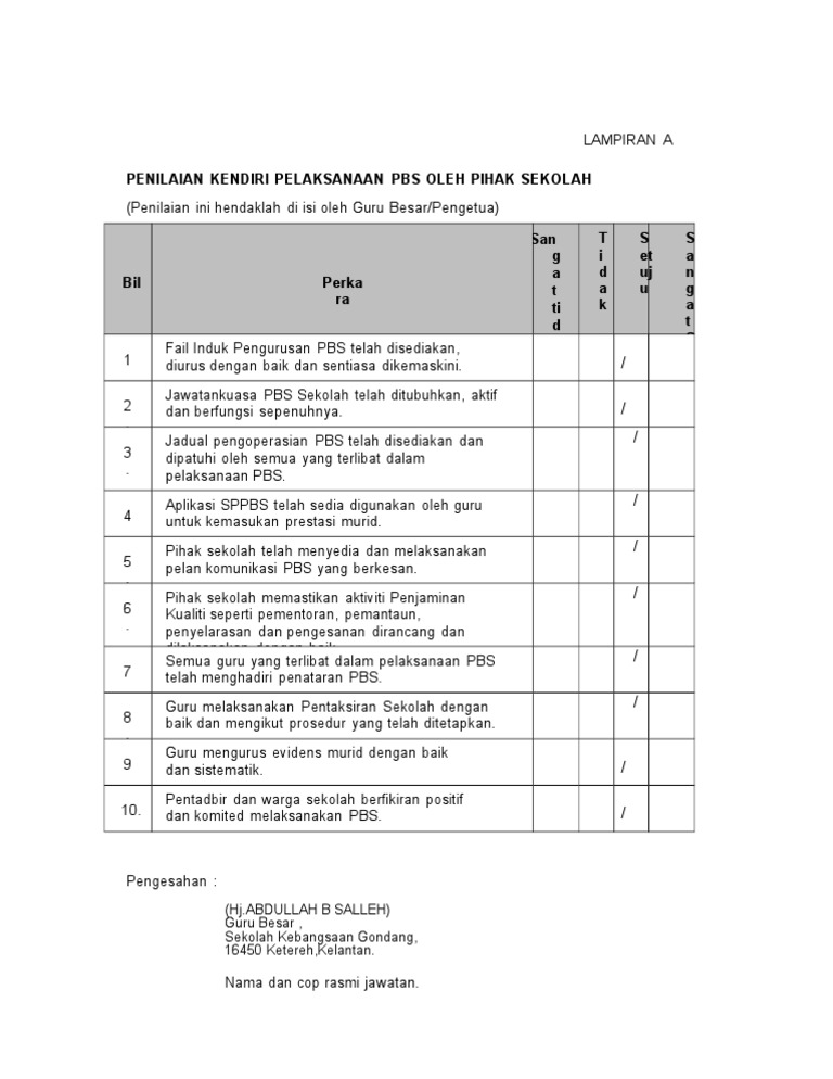 Borang Penilaian Kendiri Pbs Pdf